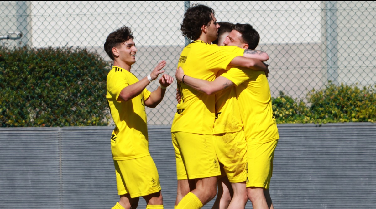 ©FSGC/Novelli | La Fiorita festeggia dopo un gol al Fiorentino: i Gialloblù restano al quarto posto in classifica
