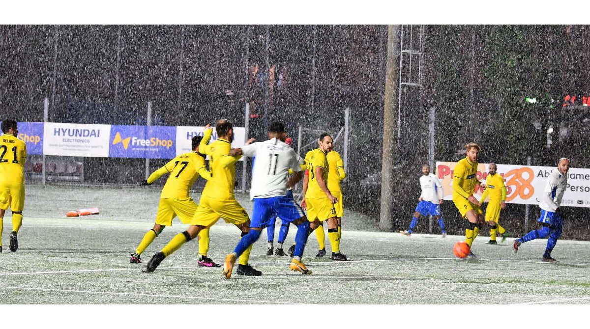 Vittoria fondamentale anche per la Fiorita nel recupero della 16^ giornata di Campionato Sammarinese BKN301 posticipata causa neve che, ironia della sorte, è caduta anche a Domagnano nella gara tra i gialloblu di Manfredini ed il Cailungo. Dopo un primo tempo chiuso a porte inviolate, complici due difese attente guidate da Elia Benedettini e Gianluca Vivan, nella ripresa la Fiorita inizia a spingere ma la retroguardia rossoverde si chiude sempre bene. I minuti scorrono e il campo si fa sempre più bianco a causa della neve. Ma a cinque dalla fine Pancotti crossa in area per Rinaldi che sbuca dalle maglie rossoverdi e trafigge Benedettini per l'1-0. Tanto basta alla Fiorita per esultare e salire nuovamente al primo posto in classifica sorpassando nuovamente il Cosmos. Dulcis in fundo, sabato pomeriggio – neve permettendo – ci sarà proprio la sfida al vetrice tra la squadra di Manfredini e quella di Nicola Berardi.