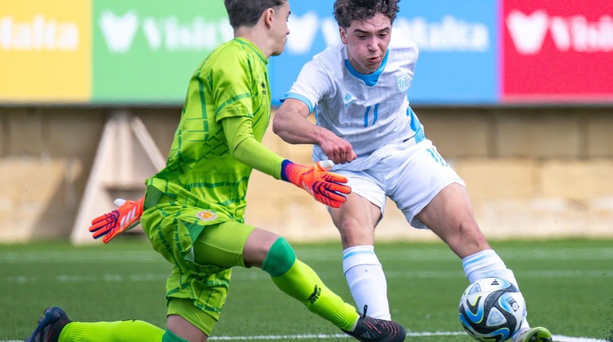 Partenza straordinaria per la Nazionale U16 di San Marino, impegnata in queste ore a Malta per il Torneo di Sviluppo UEFA di categoria. La squadra di Bonesso approccia con idee chiare e grande propositività, tanto che i pari età di Andorra devono salvarsi affannosamente sul tentativo di Montebelli già al 1’ – quando i Biancazzurrini avevano incamerato un corner. San Marino si fa preferire, con pressione avanzata e qualità in costruzione, difettando tuttavia in termini di risolutezza e lucidità al momento di chiudere l’azione. Col passare dei minuti esce allo scoperto anche Andorra, vivace specialmente sulle corsie esterne. A sbloccare il punteggio sono però i Biancazzurrini, a segno al 28’ dal dischetto con Mazza. A procurarsi il rigore, uno scatenato Montebelli – abile a liberarsi dalla marcatura avversaria per poi penetrare in area e venire atterrato fallosamente. Gioia replicata meno di 300” più tardi, quando Aureli sorprende l’altissima linea andorrana e sbuca alle spalle del pacchetto difensivo. Freddo negli ultimi metri, aggira un tentativo di chiusura in extremis per freddare il portiere a tu per tu e regalare così il doppio vantaggio alla Nazionale di San Marino all’intervallo.