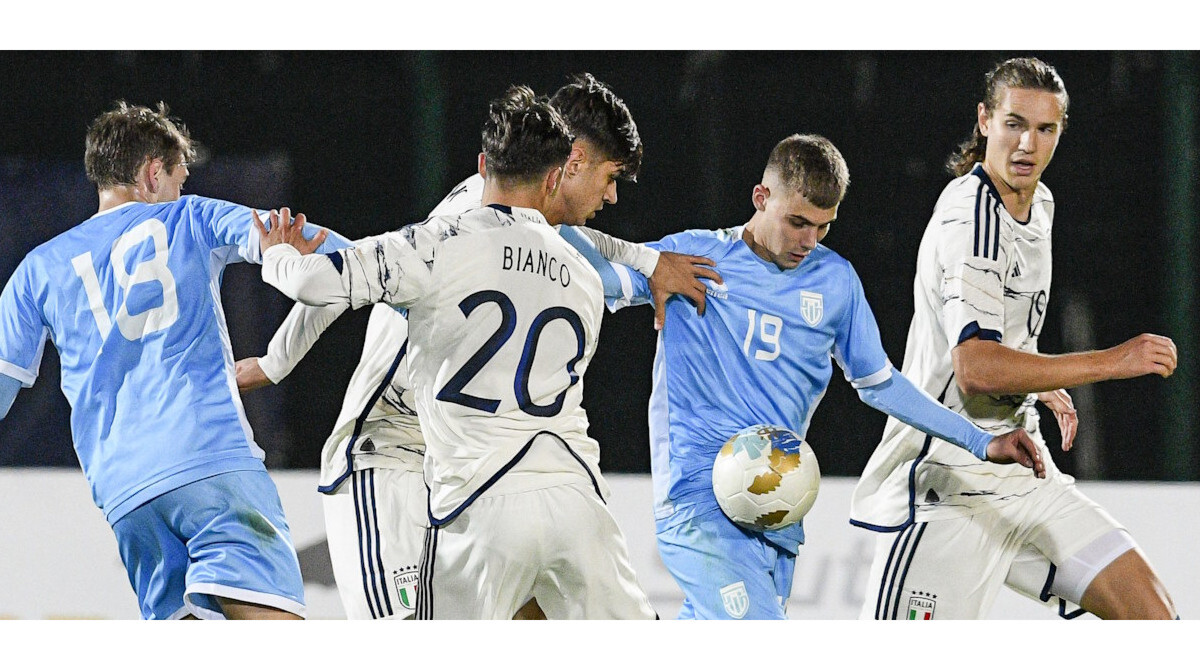 Under 21, qualificazioni ad Euro 2025 | San Marino – Italia 0-7 SAN MARINO Amici; Giambalvo (dal 61' Zavoli), Matteoni, M. Pasolini; Giocondi, Rastelli (dall'81'Dolcini), Zannoni, Toccaceli (dal 70' Gasperoni), Contadini (dall'81' Benvenuti); Sensoli, Famiglietti (dal 61' Santi) A disposizione: Battistini, Sancisi, Renzi, F. Pasolini Allenatore: Matteo Cecchetti ITALIA Desplanches; Zanotti (dal 46' Turricchia), Ghilardi, Pirola (dal 62' Guarino), Calafiori; Casadei (dal 46' Fabbian), Prati (dal 57' Bianco), N'Dour; Volpato, Gnonto (dal 73' Ambrosino), Esposito A disposizione: Zacchi, Coppola, Koleosho, Fazzini Allenatore: Carmine Nunziata Arbitro: Joni Hyytiä (FIN) Assistenti: Sami Nykänen e Veli-Matti Leppänen (FIN) Quarto Ufficiale: Antti Munukka (FIN) Ammoniti: Matteoni, Gasperoni, Santi Marcatori: 5' Pirola, 30' e 39' Gnonto, 46' Volpato, 53' Fabbian, 62' rig. Esposito, 83' Bianco