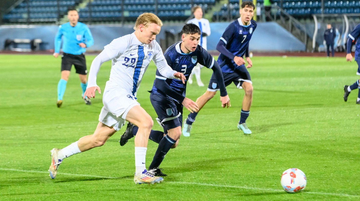 Cecchetti fa debuttare Semprini e Marinucci, mentre in attacco c’è il tandem Sensoli-Tamagnini. Sono gli scandinavi a partire forte ma i Biancazzurrini sono compatti ed ordinati davanti a Pietro Amici – oggi preferito tra i pali rispetto a Jacopo Casadei, titolare nell’ultima in casa con Cipro. Al quarto d’ora si vedono i Titani con il bel lancio in profondità per Simone Tamagnini che aggancia e mette il turbo sino ad arrivare in area, serve un grande intervento del centrale Lötjönen che evita la conclusione dell’attaccante sammarinese. Ma passano due minuti e la Finlandia riesce a passare: corner di Mentu battuto corto per Talvitie che la mette in mezzo, Semprini va in chiusura ma è sfortunato nell’occasione perché la manda nella propria porta. Dieci minuti più tardi e la squadra di Lehkosuo raddoppia, con un'altra azione che non sorride alla retroguardia dei Titani: verticale di Slitanen a cercare Ruoppi, prova ad uscire Marinucci che però scivola sul terreno bagnato dello Stadium, la sfera così passa e arriva a Söderbäck che va col mancino, Amici la tocca ma non basta. La Finlandia fa vedere anche le sue qualità dalla distanza con le conclusioni di Söderbäck (30’) e Slitanen (33’) ma soprattutto al 41’ quando calano il tris. Giocata poderosa di Talvitie sulla trequarti che si libera di Marinucci e con un passaggio illuminante offre il pallone a Slitanen che finalizza grazie ad un tocco delicato sull’uscita di Amici. Nel recupero, segnalato in un solo minuto, la Finlandia segna ancora con l’incornata di Jansson, ma è tutto vano per la posizione irregolare del centrale finlandese. Si va riposo sul triplo vantaggio degli scandinavi. All’intervallo Cecchetti mette mano alla prima sostituzione che porta ad un nuovo esordio con l’ingresso in campo di Pierini per Sensoli. La Finlandia riparte da dove aveva finito e attacca senza sosta. Al 57’ ecco il poker dei nordici con la serpentina di Talvitie che offre poi l’assist a Söderbäck che di sinistro fa doppietta. Subito dopo il gol Lehkosuo effettua tre sostituzioni e da uno dei volti nuovi arriva la quinta rete. Passano solo due minuti ed il sinistro di Tauriainen è velenoso perché trova la deviazione decisiva di Mattia Ciacci per una nuova e sfortunata autorete di serata. La pioggia cala di intensità ma non certo il gioco e la spinta dei finlandesi che aumentano il gap in pochi minuti. Al 62’ altra accelerazione in verticale che si conclude con il preciso cross dalla destra di Ruoppi per Helén – subentrato anche lui – che non può fallire il 6-0. Due minuti dopo e l’incornata di Lötjönen vale la settima rete. La Finlandia sembra sazia, così i Titani possono respirare e si fanno vedere nella seconda parte di frazione. Al 72’ il bel cross di Pierini in area per Tamagnini, la difesa finlandese riesce a rifugiarsi in corner. Poco dopo punizione insidiosa di Pietro Renzi sulla quale c’è una nuova deviazione dei nordici in angolo. L’occasione più ghiotta per i Titani arriva al 78’ con la punizione precisa in area di Renzi per Zafferani che ci mette bene il piede, Jantunen ci mette i guantoni e respinge la miglior palla gol per San Marino. C’è spazio poi per una nuova rete – l’ultima della serata – per la Finlandia che fissa il punteggio sul 8-0 con l’assist di Slitanen per Helén che sul filo del fuorigioco riesce a controllare e infilare Amici con il destro. Il portiere sammarinese è però protagonista sull’ultima azione del match al novantesimo quando con un grande intervento salva sul tentativo a botta sicura di Slitanen. Senza recupero, l’arbitro bosniaco Bilbija fischia tre volte. Prossimo appuntamento per i Titani dell’Under 21 è previsto per martedì sera nella trasferta in Romania.