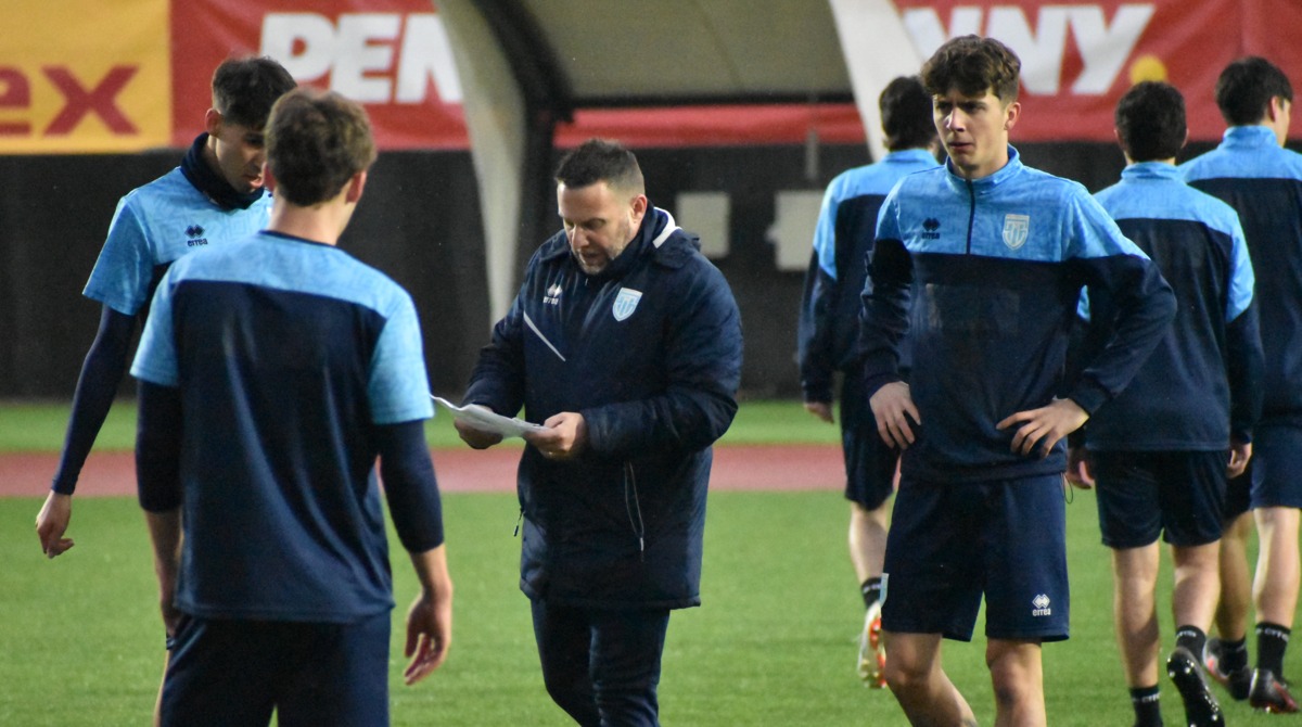 ©FSGC | Il CT dell'Under 21 Matteo Cecchetti durante l'allenamento odierno allo stadio "Eugen Popescu" di Targoviste